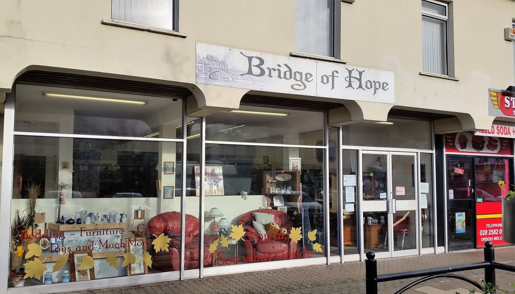 The Bridge of Hope charity shops in Portglenone are located on Main Street and are open from 10am-4pm. The Ahoghill emporium is at The Diamond on Main Street and operates from 9am-3pm. Both outlets are open from Tuesday to Saturday.