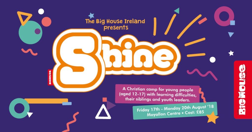 The Big House Ireland Shine Camp will run this year from Friday 17th to Monday 20th August 2018. It will be taking place at the Moyallon Centre, Gilford, Portadown, Co. Armagh. Shine is a Christian camp for young people, aged 12 – 17, with learning difficulties and additional needs.