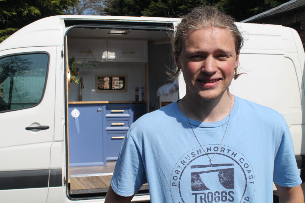 The 21-year-old Queen’s University student – he is doing Product Design Engineering – has spent much of the past year converting a white panel van into a comfortable and practical motorhome for one.