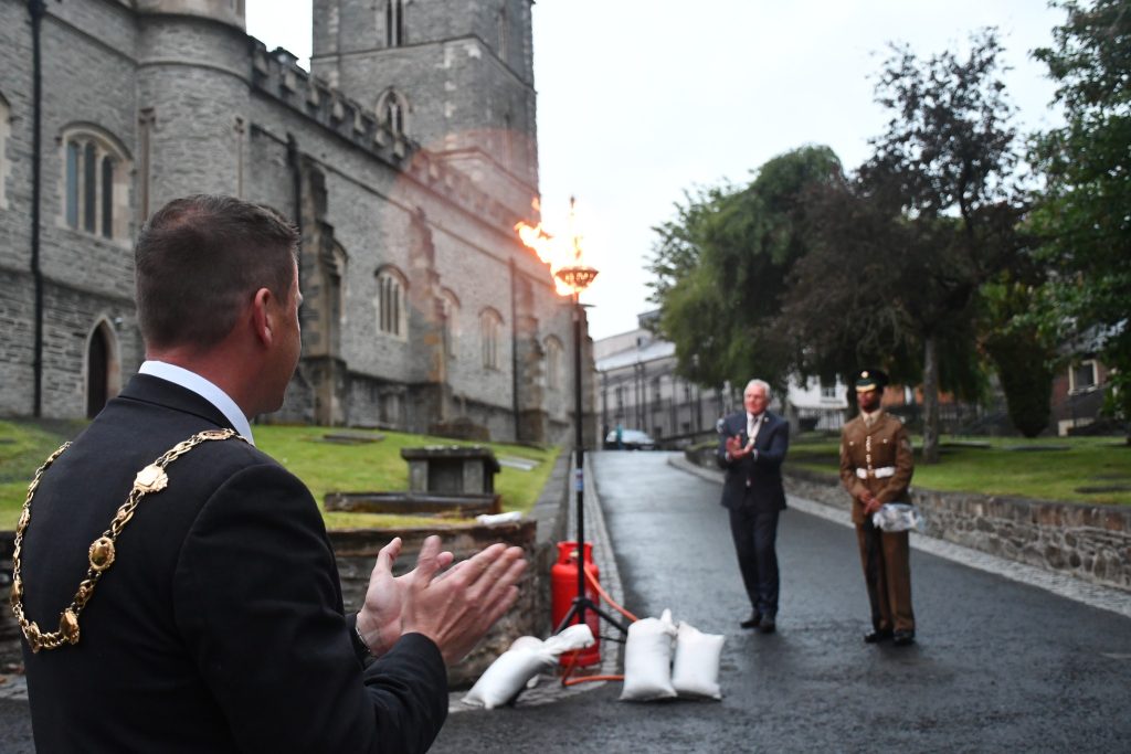On the previous evening, the Vice Lord Lieutenant for the County Borough of Londonderry, Mr Ian Crowe MBE DL, lit a beacon at the main gate of St Columb’s to mark the Platinum Jubilee.